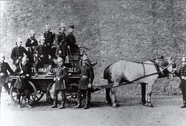 St Thomas was incorporated into Exeter in 1899. Before then, it had its own fire service. This is the fire-wagon and crew in 1889.