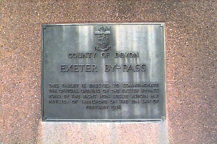 On 23 February 1938, Dr Leslie Burgin (Minister of Transport) formally opened the new bypass at the Peamore junction where the road spilt between Dawlish and Plymouth. Taking a special pair of scissors from an inscribed case, he cut the tape to open the road. The Times wrote that the Minister had said, “The people of Exeter need have no fear of the by-pass for it was better to have willing customers who could reach the city than disgruntled tourists who were delayed on their journeys through being unable to pass through it.” The Minister was then driven along the length of the bypass to the Honiton Road bridge where he unveiled a plaque on the parapet, and the County Surveyor thanked Mr Warren for his innovative design for the bridge.