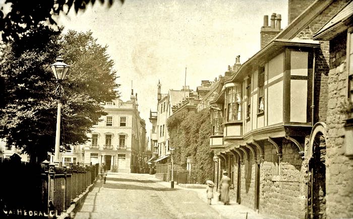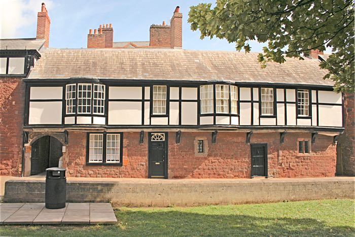 This attractive group of buildings, with a central courtyard, next to the Devon and Exeter Institution, was constructed for the use of the Cathedral canons and dates from about 1500. There have been many modifications, since, with the Notaries' House at the rear the last major addition.