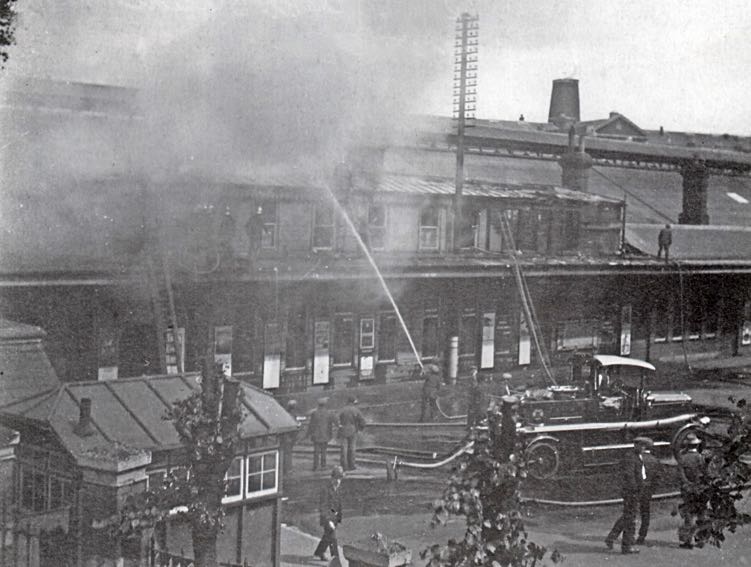 The fire in 1910 at the timber yard mentioned in the text. The fire threatened Queen Street Station.