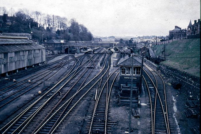 In 1959 two million passengers used the station, but traffic was being lost to road transport. Merchant Navy class engines hauled many holiday specials into Central during the summer months (see video right.) In December 1967, general goods were withdrawn, although cement continued to be handled until 1990. Signalling was transferred to St David's in 1985 and the old box closed.