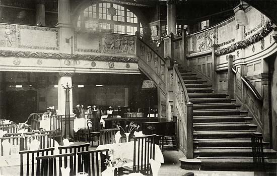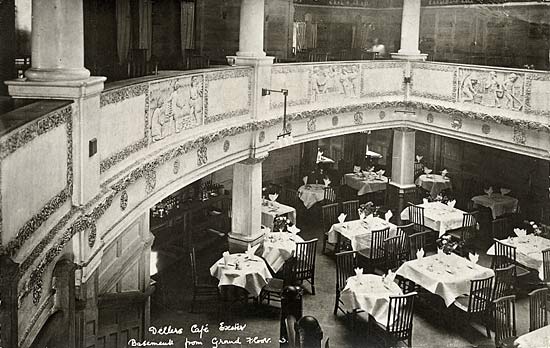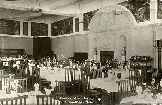 The area for the orchestra on the floor of the cafe. The gallery where diners could sip afternoon tea while entertained by 'Gwen Master and her Orchestra' surrounded the main floor.