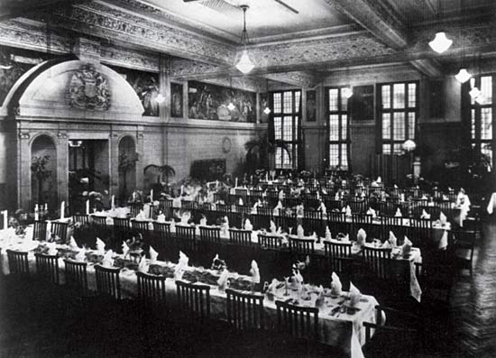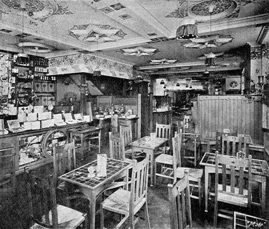 The interior of Deller's Cafe in Cathedral Yard in 1914.