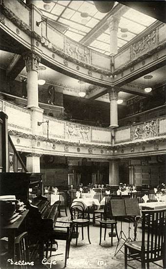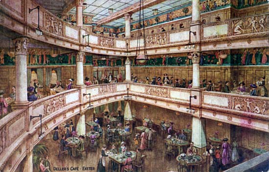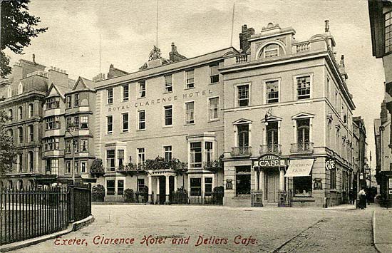 The first Deller's Cafe in Exeter opened in the old Exeter Bank premises, adjacent to the Royal Clarence Hotel, on the corner, in 1905.