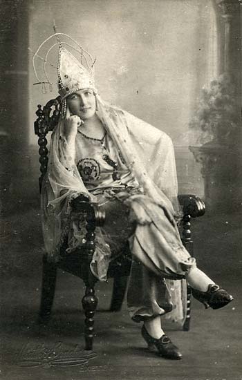 Deller's was the place to go for special celebrations and events. Left is a ticket for a Grand Flannel Dance held in August 1931. Right, is a lady dressed as Sheba, ready for a Fancy Dress Ball at Deller's, probably in the 1920s.