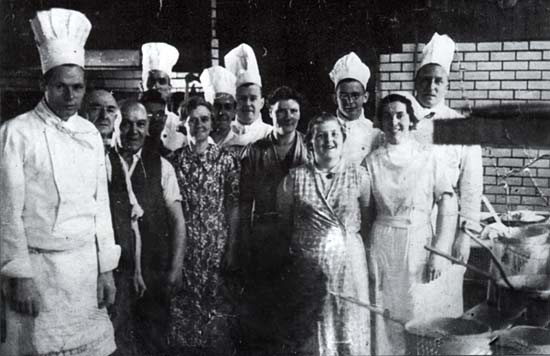 Kitchen staff pose for a photograph. George Croft, head chef, is on the extreme right – 1930s.
