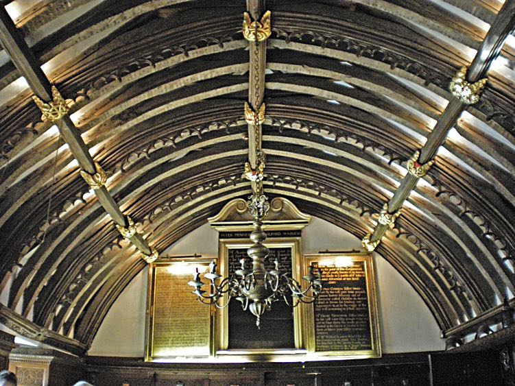 In 1875-76 both the interior and exterior was restored and cleaned after John Hayward, the architect, surveyed the building in 1853, and found the facade of the building on the street was in poor condition. Unfortunately, a few Victorian details were added to the exterior, although much of the ancient fabric was retained. Repairs were made in 1901/2 to the interior and in 1907 the porch was renovated and a, new oak, stairway installed up to the main Hall.