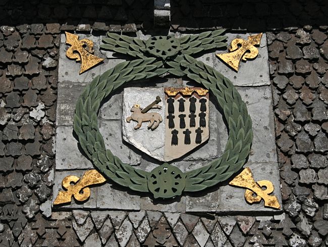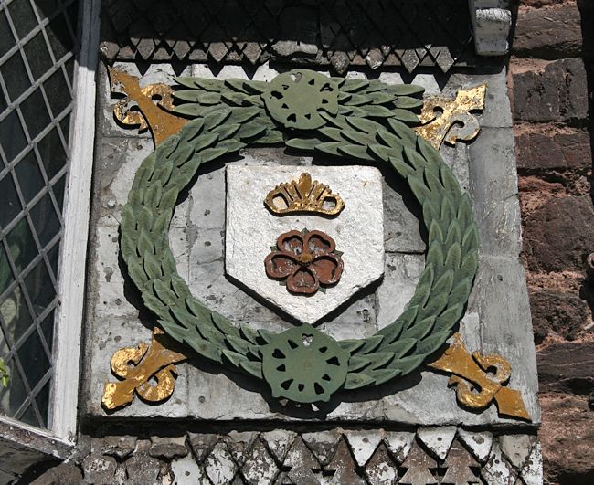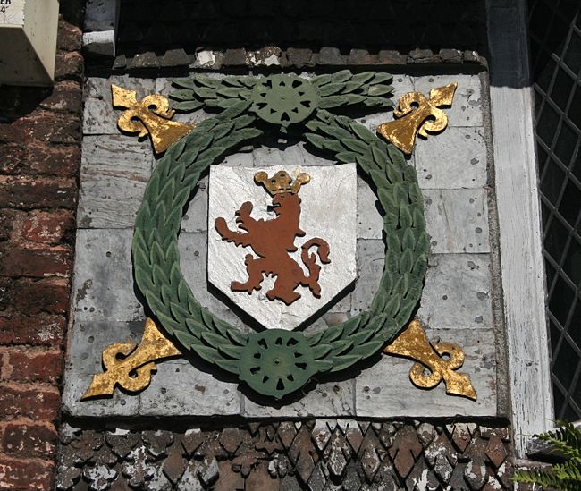it was built by "Isaac Burche the Elder", a maltster, who died in 1683. The house passed on to the Gubbs family in the 1670's, before Burche died. John Gubbs married Elizabeth Leach in September 1670, which accounts for the Leach coat of arms on the right side of the house. The