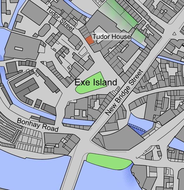 buildings to survive in Tudor Street, on Exe Island. It is something of an enigma, for it is uncertain when it was built. English Heritage date it to the late 16th Century, without giving any evidence, while research by Jacqueline Warren suggests otherwise.