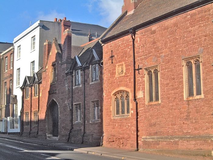 The almshouses were rebuilt by Edward Ashworth, the ecclesiastical architect while Harry Hems, was employed in the restoration. It is this building that we see today. There are several memorials to the Kennaways in the chapel, including a carved marble and mosaic work to Harriet Codrington (Codrington Street is named after her); Kennaways wife who died in 1861.