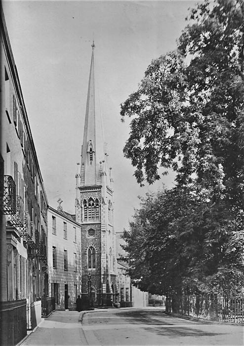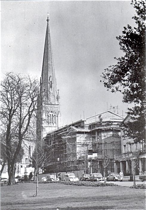 The church grew in numbers and in the middle of the 19th Century it was decided to build a new church on the site of the old Southernhay Bath House, at the corner of Dixs Field, and the foundation stone layed on 25 June 1868. Beneath was placed a bottle containing a selection of London and local newspapers, coins and a list of names of the members of the committee. The silver trowel used to lay the stone was presented by Mrs. Alfred Evan of St. David's Hill. A dinner was given, after the ceremony, at the Royal Public Rooms.