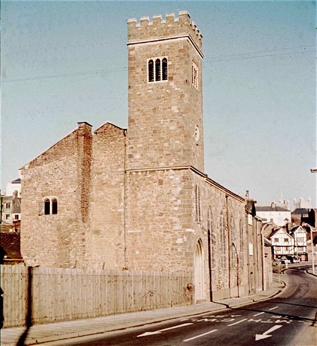 The last time the church was used for regular services was in 1956, before it was damaged by fire in 1969. The traffic scheme of the 1960's and 70's that created Western Way required the demolition of many properties in Edmund Street—work to demolished the church commenced in 1973. While the demolition was in progress it was realised that it was on the remains of the old Exe bridge, allowing archaeologists to excavate it in 1975. Even though the demolition had been extensive, restoration work by Dart and Francis of Crediton was undertaken to stablise the remaining tower, and allow access.