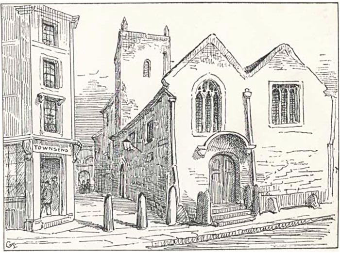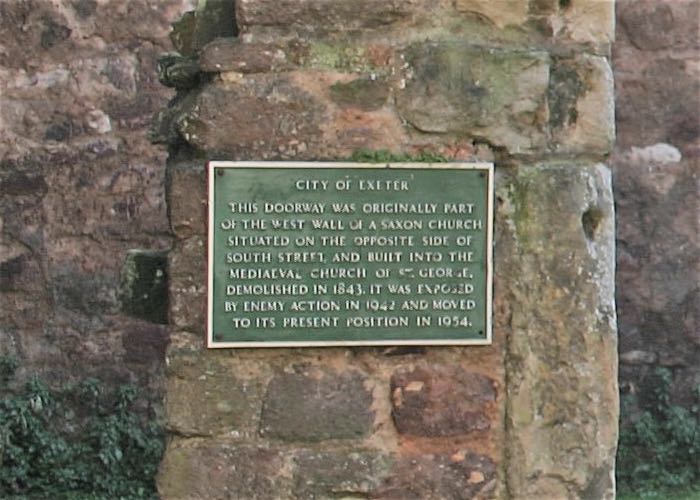 The date of the founding is unknown, although excavations after the war revealed Saxon stonework (9th or 10th Century) surviving from the church. Built of course Heavitree sandstone, with a single aisle and chapel—a south aisle was added in the 15th Century. Internally the church was small with a 33 ft (10 metres) long and 15 ft (4.5 meters) wide nave, and a tower at the west end, bounding George Street.The tower was constructed in the 15th century and housed three bells which were recast as five bells in 1740.