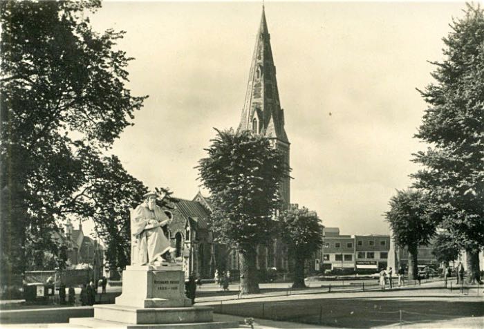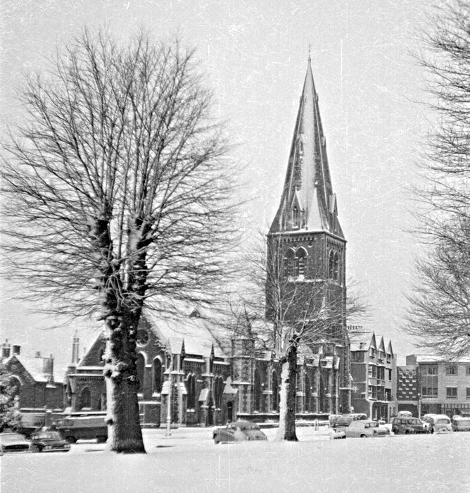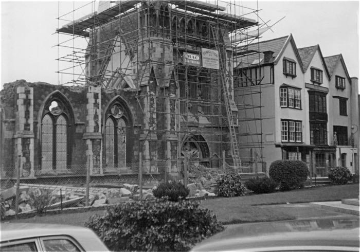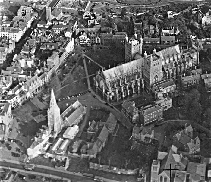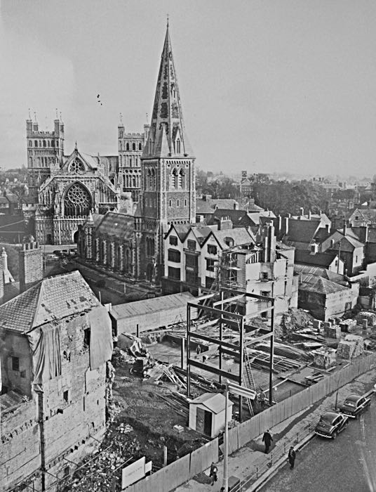 St Mary Major was right on front of the West Front of the Cathedral as shown in this photo taken in the early 1950s when South Street was being rebuilt. Photo Express & Echo.