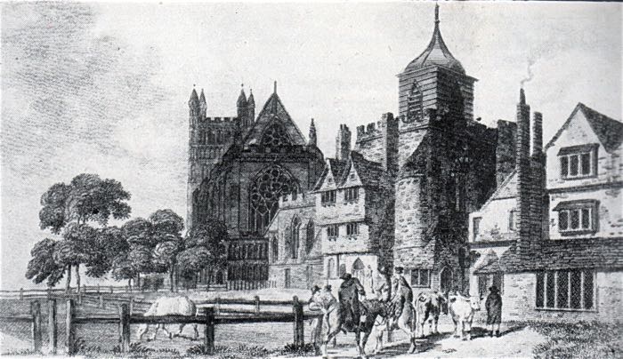 When the 16 year old Catherine of Aragon was en route from Spain to marry Arthur, the eldest son of Henry VII in 1501, she stayed at the Deanery, close to St Mary Major. The weather was very windy and the vane on the top of the church '...did so whistle that the princess could not sleep' – a workman was ordered to climb the tower and pull it down. The tower was lowered in 1581, and again in 1768.