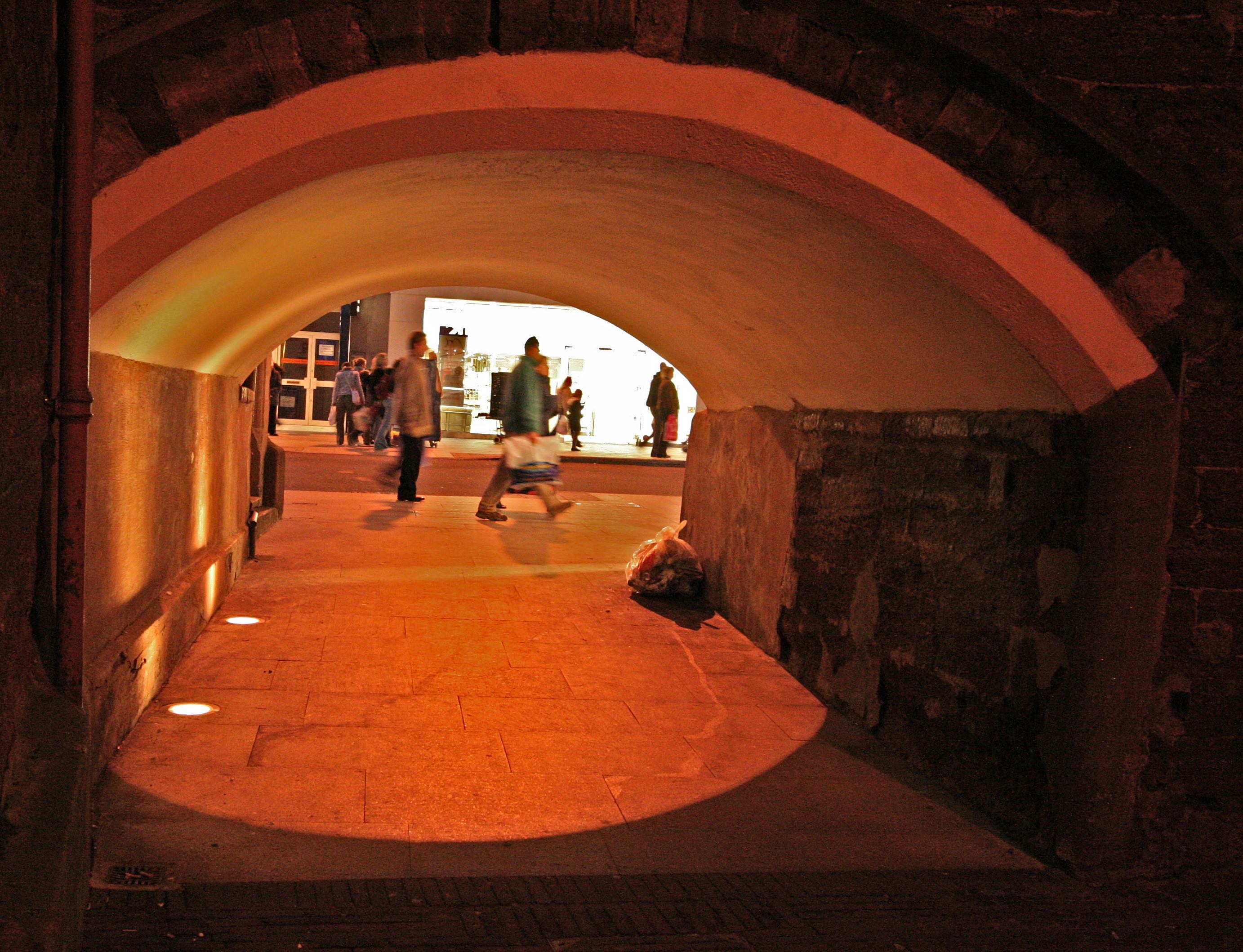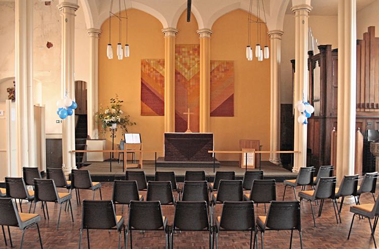 The Victorian fittings in the church were removed in 1972 and the building opened up into a space for community use. The room over the ancient bow was made into a meeting room and a small kitchen installed in the north-east corner. Situated in the High Street, St Stephen's is now part of the Central Exeter Parish. It offers the weary shopper, coffee, charitable events and exhibitions during the day. There is an appeal for funds to restore the interior of the church, and plans to open up the area behind the altar, that is over St Stephens Bow, and also to install a glass observation panel in the floor to allow the crypt to be viewed.