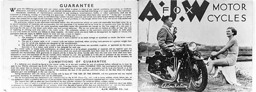 After World War II the company was sold to Jack Ball in Bournemouth and then Wimborne, Dorset. The last model built was the 125cc Fox Cub in 1953 when the supply of JAP engines ceased. In 1958 they produced the 48cc Fox Cub, and continued to sell it until 1964. AJW started importing 500cc and 125cc Italian manufactured lightweight machines with AJW badged tanks. They ceased trading in 1981.