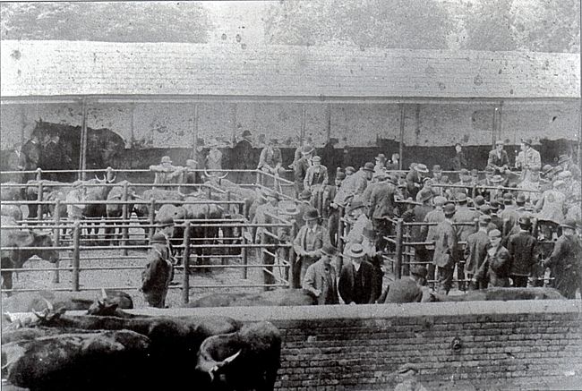 In pre-19th-century Exeter, individual butchers purchased their animals from local farmers at the markets held in the streets of the city. The High Street, and later, Bartholomew Street was the venue for cattle sales, Bartholomew Street hosted the pig and horse markets and so on. The street markets would cause chaos on market days, and citizens would have to look where they stepped, lest they slipped on some animal effluent.In addition, the top end of Smythen Street was known as 'butcher's row', because of the many butchers, who woud slughter animals on the premises.