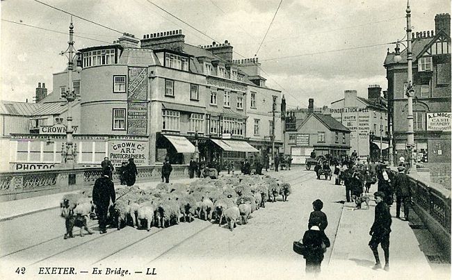 Driving animals along the roads leading to the Bonhay Cattle Market would always be a risky business. In 1880, a Chagford farmer drove some sheep down Bonhay Road towards the market. A horse cab came up from behind, and was driven through the sheep, injuring one. It later had to be put down. The case went to court, and the defendant was acquitted.