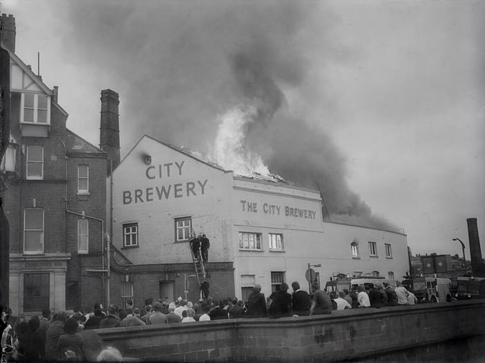 raged through the brewery, and 30ft flames leapt through the roof. The