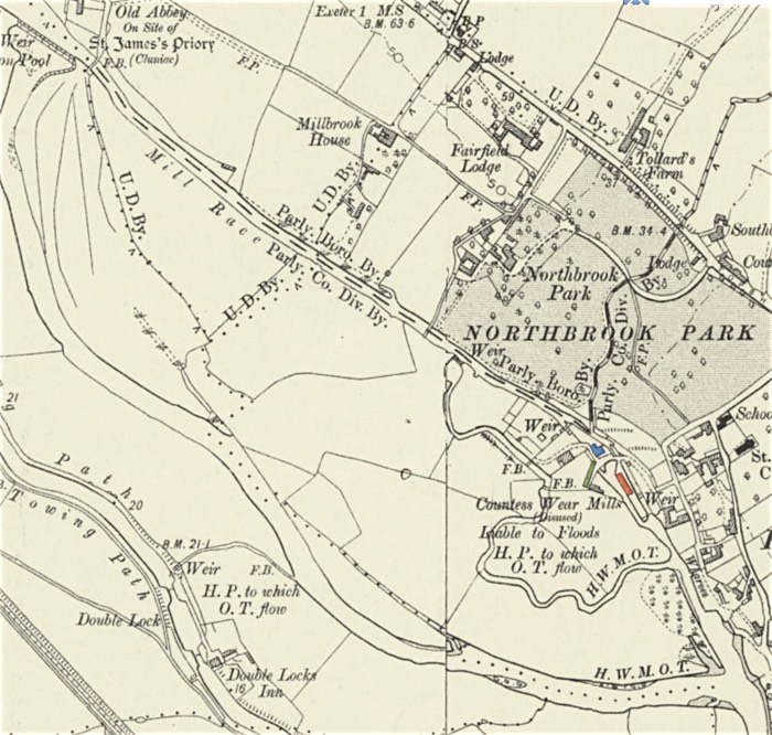 A mill site could house several wheels, each performing a different function. For example, in 1757 there were two fulling mills, a leather mill, three grist mills, and one rape mill at Ware (Wear), Topsham. The multi-mill nature of the site is confirmed when in 1777, a Higher and Lower mill were mentioned, the first time two paper mills at Countess Wear are recorded.