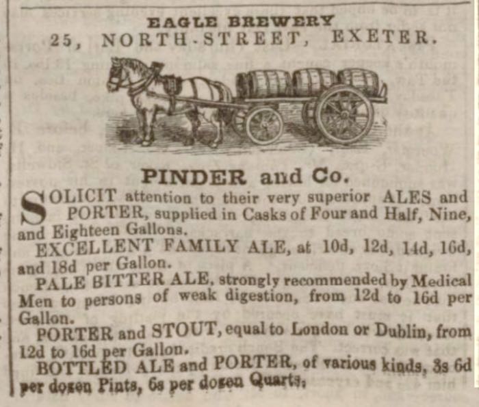 There was an earlier Eagle Brewery initially based in Sidwell Street, in 1850. It supplied ingredients for home brewing. Run by Frederick Pinder, he went into partnership with Henry Hull and relocated to 25 North Street in 1851, and started to brew "genuine home-brewed ALES AND PORTER".