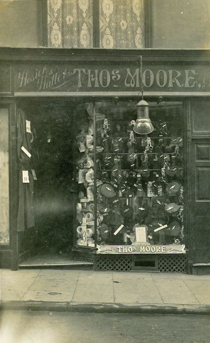 Although Fore Street was considered to be somewhat 'downmarket' at the time, with its close proximity to the West Quarter, the shop quickly gained a high reputation among the more affluent of Exeter. By 1910, Moore's had moved into the shop next door and was one of the first businesses in Exeter to install gas lighting to illuminate the display in the shop front. The business expanded with the introduction of children's wear, helped no doubt, by Moore's McDonald's like promotion, of a free penknife to every customer.