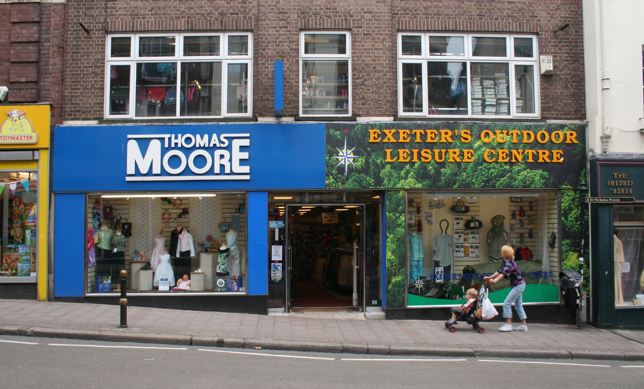 In the 1960's girls and ladies clothing was added to the range. In 1982, on the 75th anniversary of the founding of the company, Edward Walters died. The business continued to be run by Walters son, along with two of Alfords sons. Although young Walters retired in 1998, the store continued to serve the people of Exeter and now occupies 102, 103 and 104 Fore Street and has grown from 3 employees in 1907 to 35 now. The modern Thomas Moore specialises in school uniforms and is Exeter's largest toy and games shop.