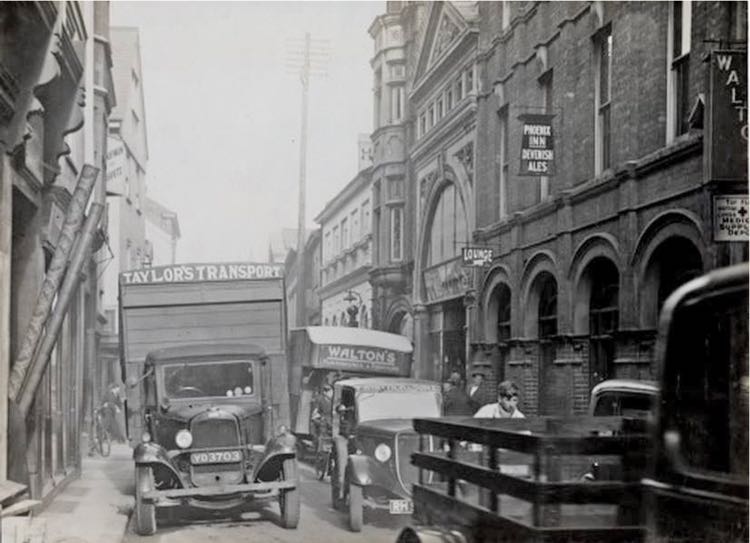 The entrance from Goldsmith Street was an elegant design of Bath stone in a Classical style. The pediment and cornice were supported by simple Ionic columns, while each spandrel contained a figure carved by Mr E Roscoe Mullins from London–the figures represented the idealisation of tea and coffee, for Newman certainly had high ideals for his new retail space. For those, such as myself, who are not familiar with architectural terms, the grand entrance will be well known to many who remember the entrance to Waltons Supermarket in the 1960s.The High Street entrance was remodelled with a plate glass front, an expensive option that had recently become available from Pilkington.