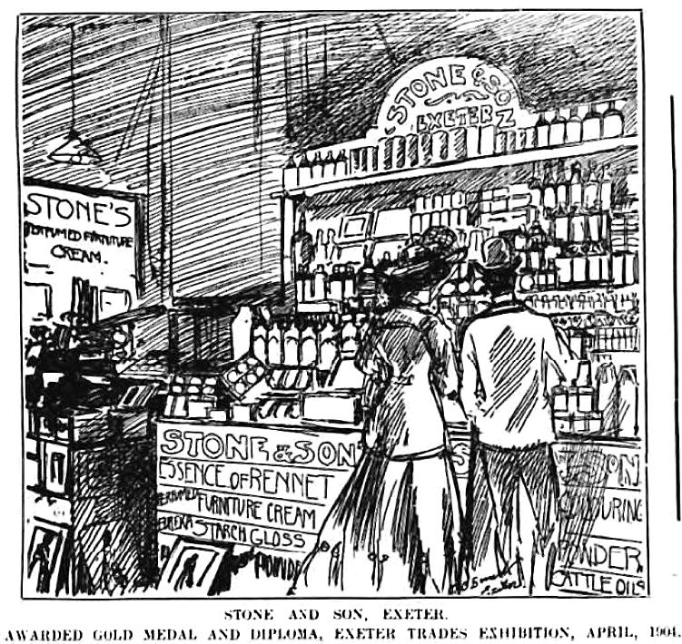 By 1900, there was a small production line devoted to making furniture cream and other products and they were listed as a drugs wholesaler, on the Exeter Insurance Map of 1911. The early 20th century saw Hilda Stone, and her cousin Alan, managing the business.