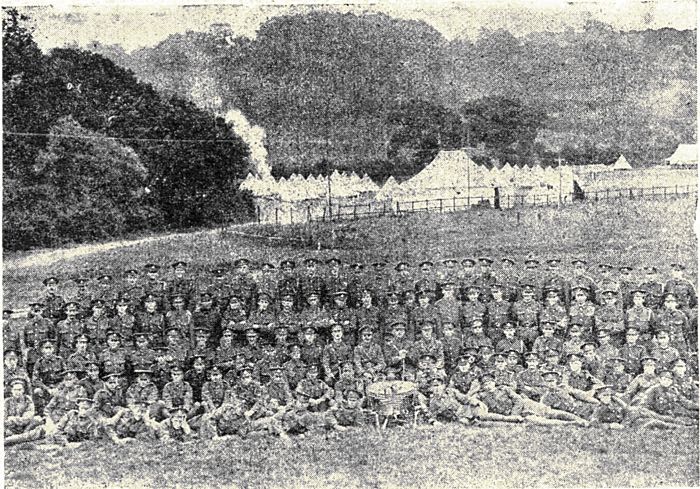 Bandsman Rendle, V.C., is seated in the centre. He is a native of Exeter.