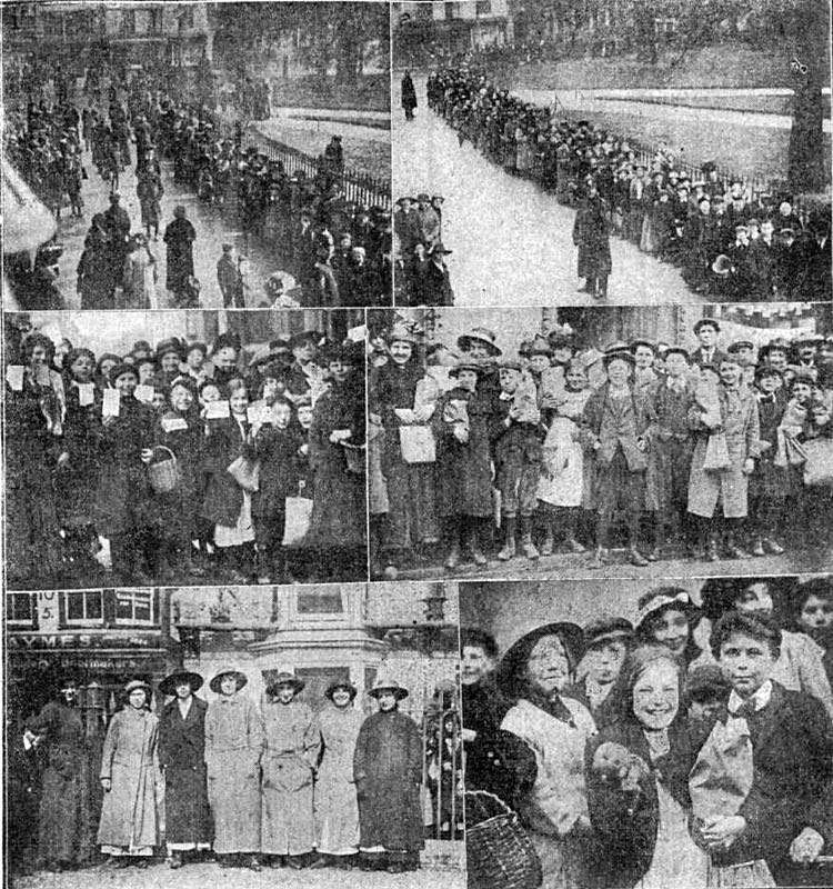 There was again a great hunt for margarine in Exeter on Friday, and at one company shop in High-street the queue for the greater portion of the day was of such dimensions that three, and at times four, members the City Police were busily engaged in regulating the traffic. This particular establishment closed on Thursday, the public being informed that the premises would be opened the following morning for the sale of margarine "so long as the supply lasted." When the shop door opened in the morning there was a goodly number assembled in order to make sure of their margarine. As the day advanced the queue grew in proportions, and the lady assistants, were kept busy for the greater part of the day doing half-pounds of margarine, but the supply was totally unequal to the demand, and before 5 o'clock the word was given that all had been sold out. Even then there were a number of persons outside the establishment waiting, and these were compelled to go empty away. Then other establishments were tried, but the would-be purchasers were met with the reply, one after the other, “No margarine." At the Exeter butter market there was also a queue, and here the supply was totally inadequate to meet the demand. Outside a pork butcher's establishment in Sidwell-street during Saturday afternoon a considerable crowd of people lined up, and the proprietor of the establishment was compelled to shut his front door and only admit a certain number of purchasers at a time. The various joints were rapidly bought up and rarely have the assistants experienced so busy a time. The demand for pork is undoubtedly due to the phenomenal price of poultry, the poorer classes being unable touch either turkeys (2s 6d 9d per lb.), geese (l1s 6d to 2s 6d per lb.), chicken (up to 24s per couple), ducks (up to 25s per couple)