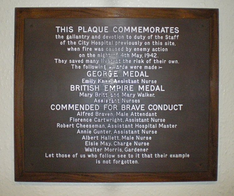 Nursing staff were commended for their efforts in trying to save their patients. Night nurse Mrs Emily Knee stated "...We succeeded in getting many of the patients out, but when we came to rescue those in Block A Sick Ward the fire was raging and the stairs were ablaze, and we could not get to them". Nurse Knee received the George Medal for her bravery, while two British Empire Medals were awarded that night and seven commended for brave conduct. All the records for the hospital were also lost in the conflagration.