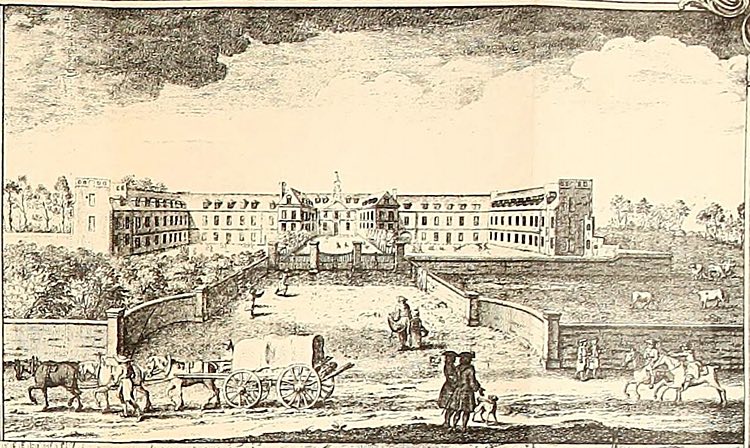 The building was designed by Richard Mitchell–at the centre was a large chapel, surmounted with a cupola and clock. There were apartments for the governor, and rooms for offices and committee meetings. the wings were divided into wards, with capacity for several hundred paupers. Behind, was further superior accommodation for people who were paid for by their parish. Workshops were provided to employ the inmates. At the front was a large grassed area, with rows of trees, enclosed by a wall, for the recreation of the inmates. By 1707 the whole complex was complete. (1)