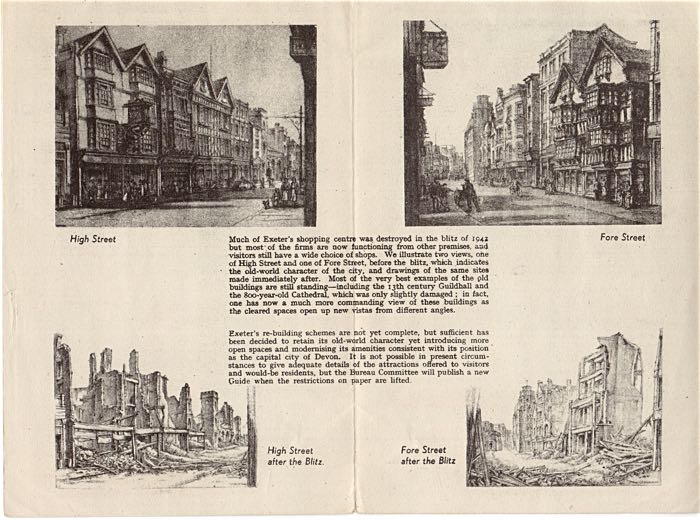 Known as the Exeter Official Information Bureau, the bureau opened at 21 Queen Street, opposite the museum. Funded through subscriptions from business, and a small grant from the City Council, it quickly produced the first official city guidebook. Even through the First War, the Bureau promoted the city, including, from November 1916, the newly opened St Nicholas Priory. In 1924, Exmouth started contributing funds, as Exeter became the centre for touring Glorious Devon.