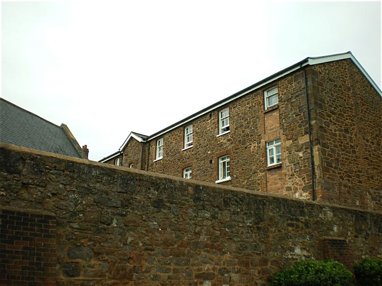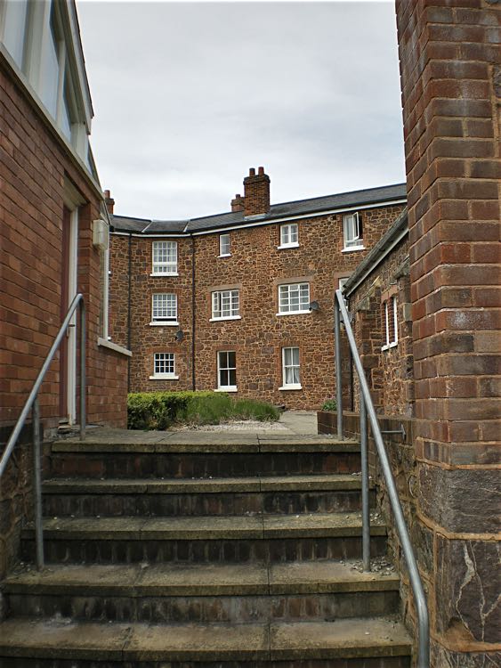 A new workhouse was built at Redhills in 1837, on the border of St Thomas and Exwick to accommodate 450 inmates. The architect was Sampson Kempthorne, who designed many other workhouses in Devon, and it covered 3½ acres and cost £11,000 to construct. It had three wings, emerging like spokes from a hub, with each wing meeting at right angles a long block arranged around the hexagonal periphery. Each area between two three storey accommodation wings was divided into two exercise yards. Sometime later, a hospital block was built north of the main complex, on the Exwick Road known as the Victoria Block, and a second Albert Block dating from 1897.