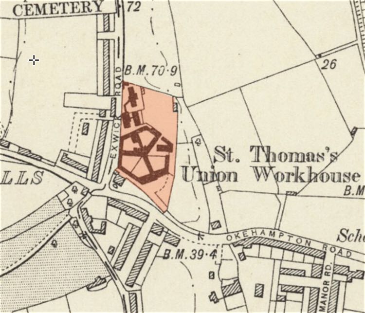 Before 1899, St Thomas was responsible for its own administration. Therefore, the St Thomas Poor Law Union was formed on 21st April 1836 to administer poor relief over a wide area of 49 parishes including Alphington, Exmouth, Heavitree and Woodbury, to be overseen by a Board of 61 Guardians.