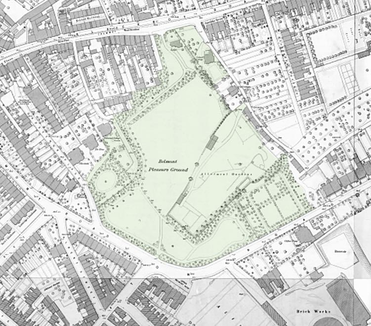 The next year, the park was the centre for a pageant of Olde Englishe Sportes to celebrate Queen Victoria's Diamond Jubilee. The 1897 Kelly's Directory, noted that John Lock was the keeper and also remarked 'The neighbouring streams afford abundance of amusement to the angler'. I bet there are no fish now! In 1902, the Coronation Celebrations for Edward VII saw Belmont Pleasure Grounds used as a venue for various sports including the egg and spoon race, sack race and wheelbarrow race. The programme stated that spurs were not to be used in the donkey race.