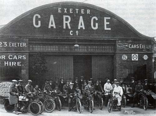 The Exeter Garage was a popular meeting place for motorcycle enthusiasts. The garage site is now occupied by the Pyramids swimming baths, Heavitree Road.