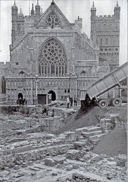 Once the archeologists had thoroughly investigated the site it was decided to cover it over with sand to preserve it. The Cathedral's plans to expose the bath house and build an interpretation centre will be easier because of this foresight. Courtesy Express and Echo.