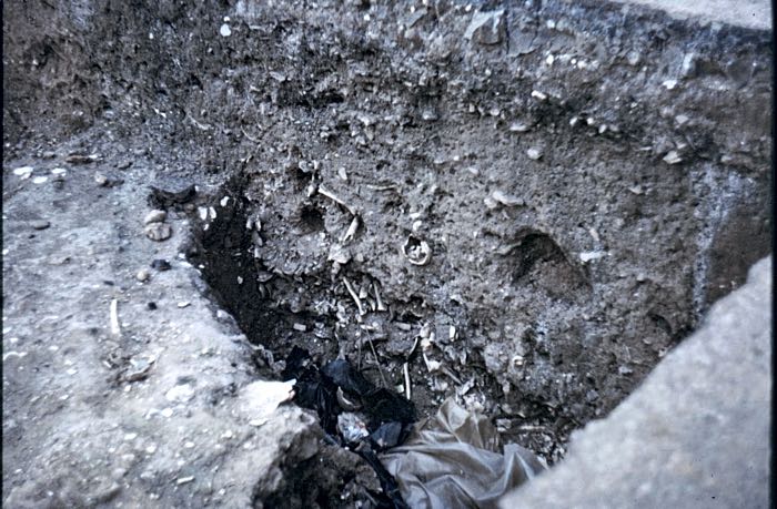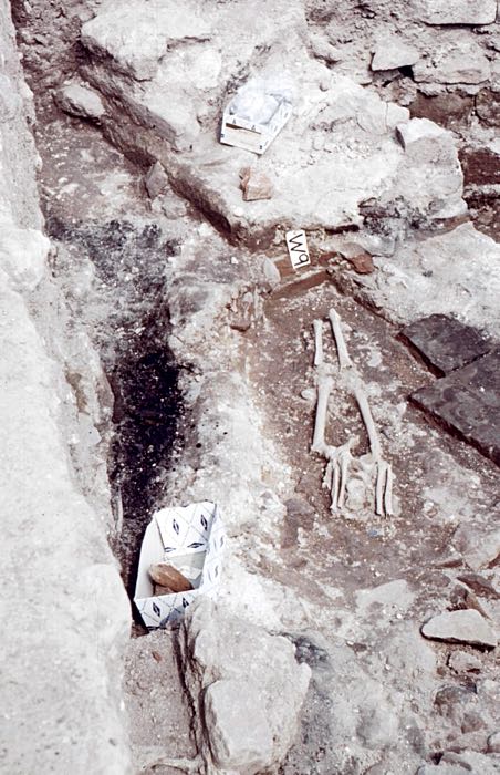 The human remains in the centre of this photo were probably at the edge of the site. They are fairly jumbled, as they were from the later Christian burial ground surrounding the Cathedral.