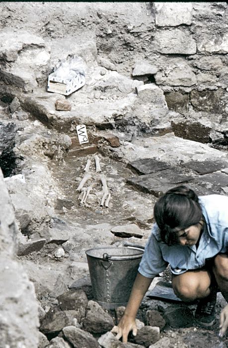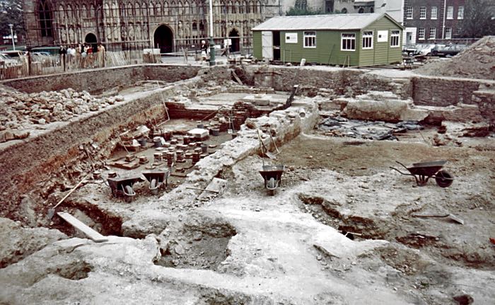The skeleton behind the archeologist was under the Saxon church of St Mary Major. It was thought to be one of the earliest Christian burials in the city.