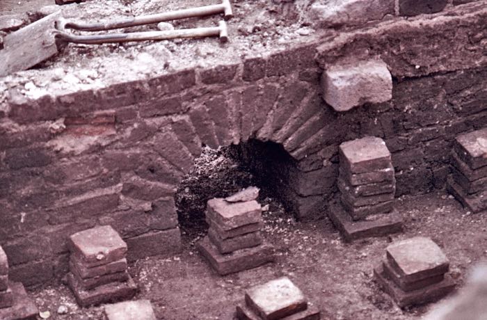 A Roman arch constructed from bricks allowed the hot gases to pass through.