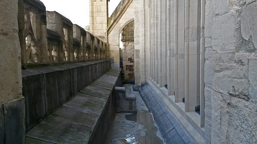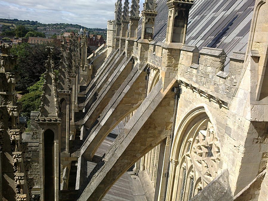 Overlooking the Bishop's Palace and garden, some of the flying buttresses that prevent the roof from falling in.