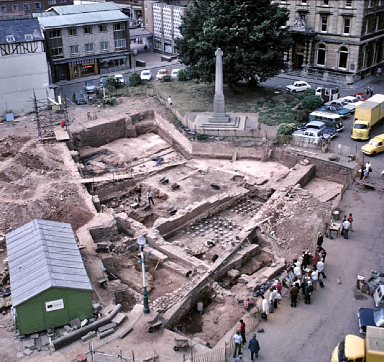 When St Mary Major was demolished in 1971, archeologists found the remains of a Roman Bath House. Major excavations were carried out the next summer. When complete, the remains were covered with sand in the hope they could be exposed some day in the future. The Cathedral applied for funding to open up the bath house in 2014, but were turned down. They intend to apply again, and if successful, build an interpretation centre over the remains.