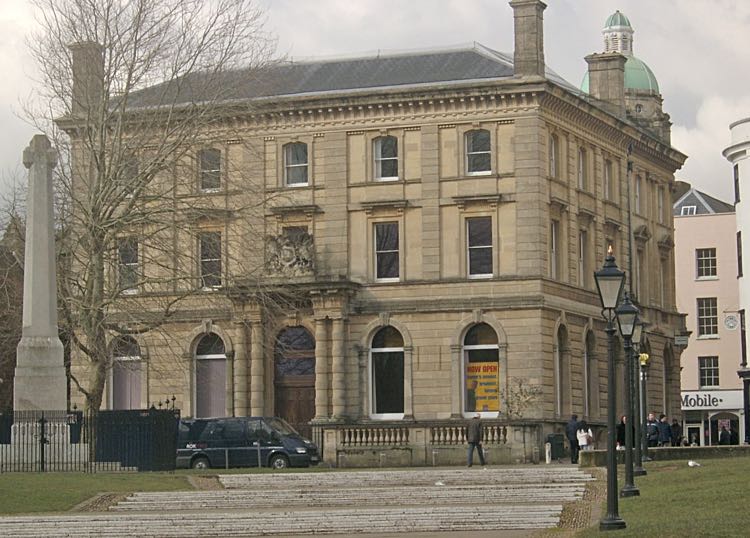 Established in 1786 by Samuel Milford and Richard Hall Clark, the City Bank's first premises were on the corner of Bear Street, near the Deanery. Milford was a successful serge and woollen merchant. The partners contributed £15,000 each to the business, who then engaged "a steadyclerk of... undoubted character". In 1793 the bank moved to a newly built banking hall close to Broadgate. The bank merged with the Devon and Cornwall Bank and rebuilt its premises in 1876, into what you see today.