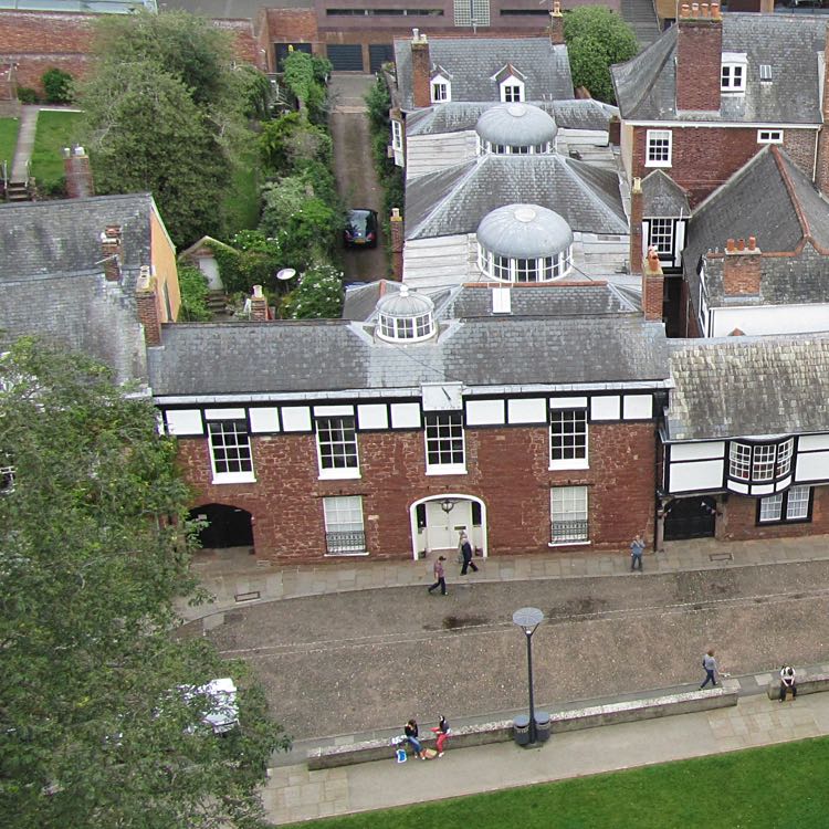 Now occupied by the Dean of Exeter, the oldest parts of the building date to the 14th Century. It has been the residence of the chancellor of the Cathedral, the Treasurer and the Chief Verger. Inside is a carved ceiling, bearing the arms of the Courtenay family, the historian Hake, Bishops Fox, Lacey and Oldham, and Lady Margaret Beaufort.