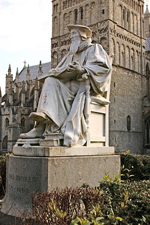 Richard Hooker was born in Heavitree in 1554 and educated at Exeter Grammar School. The statue, unveiled in 1907, is of, is carved out of white 'pentilicon' marble, by Alfred Drury RA (1856-1944), at a cost of a thousand guineas.