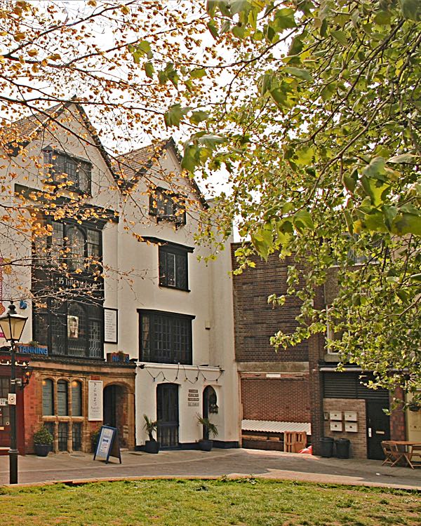 This was once the home of the Cathedral canons, and dates from about 1500. Inside the Law Library has a fine hammer beam roof, the construction of which is similar in style to that of Westminster Hall. The three storey Notaries House at the rear, is in Queen Anne style. The front now houses Chandni Chowk, which sells Indian soft furnishings.