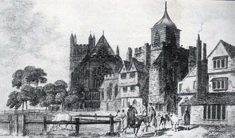 After the murder of Walter Lechlade in 1283, Bishop Quinell obtained permission, from Edward I, to build a wall around Cathedral Yard with seven gates, to be locked at night. It was this single act that delineated the boundary of church authority over the secular within Exeter.